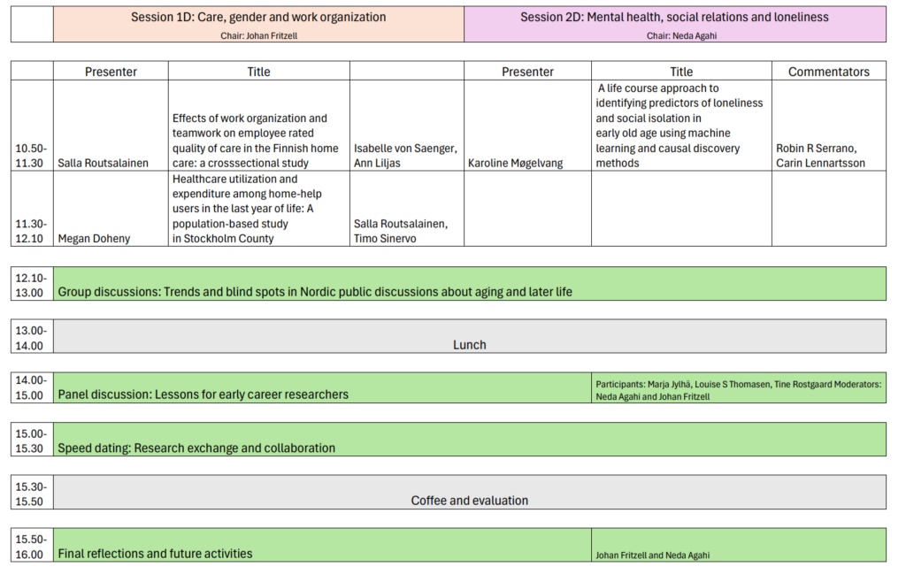 The workshop was otherwise devoted to updating and deepening research collaboration on social inequalities in aging between the Nordic countries. Among other things, group work was carried out to identify current trends and blind spots in the Nordic public debate on social inequalities, ideas were developed for joint symposia at upcoming international conferences, and a panel discussion was held where seniors discussed opportunities and challenges from a career perspective. Louise Scheel Thomasen also participated by presenting The Nordic Welfare Center’s work in supporting Nordic cooperation on public health issues.